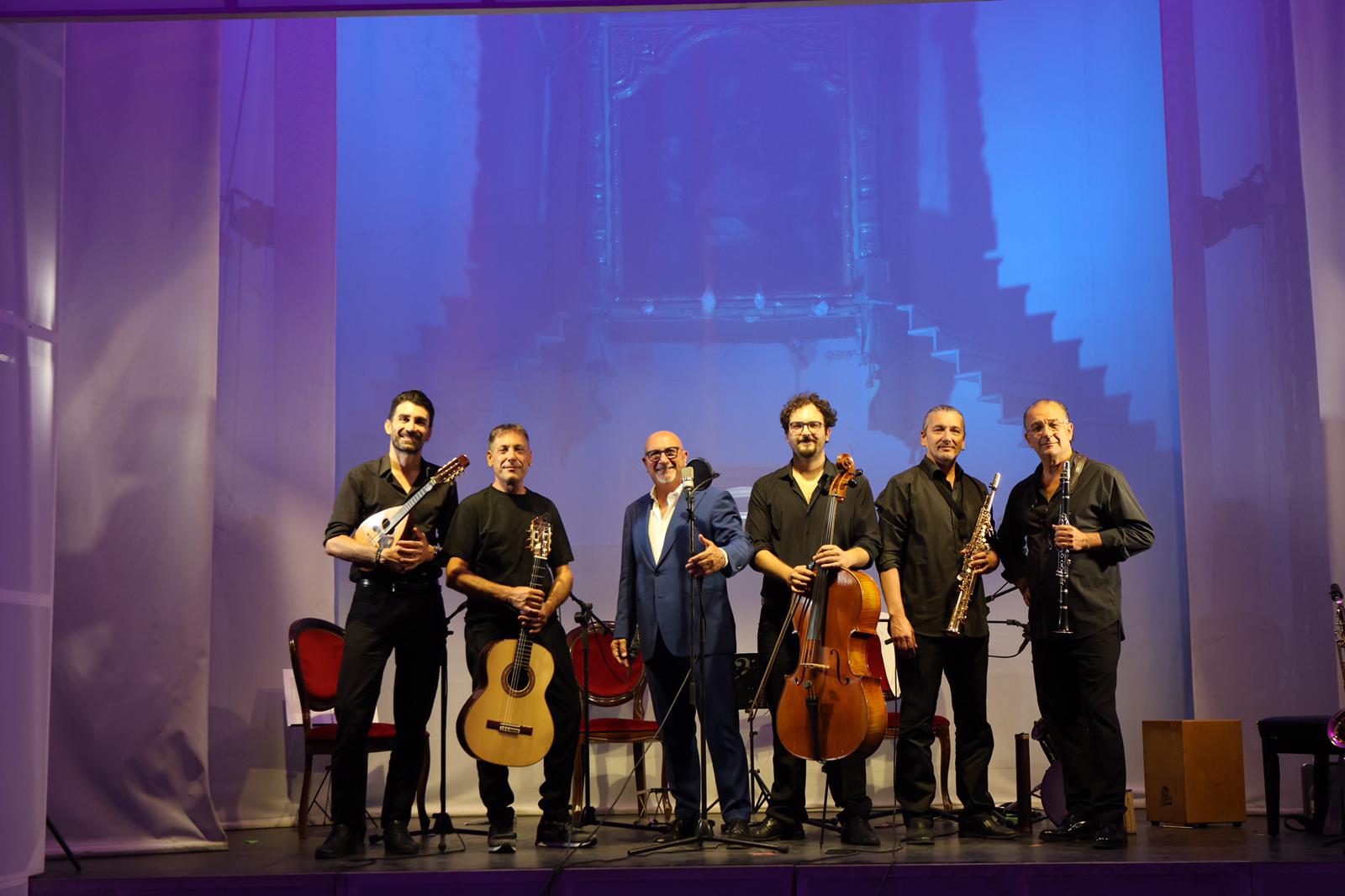 Musicisti del calibro di Michele Cordova (chitarra), Giuseppe Carannante (clarinetto, sax), Alessandro Pignalosa (mandolino), Francopaolo Perreca (sax, clarinetto, percussioni) e Mario Carannante (violoncello, basso), formano il Gruppo Smeraldo: sveleranno allo spettatore la Napoli più verace e autentica, con arrangiamenti e sonorità particolari, alternati a racconti della città e aneddoti degli autori raccontati da Pisapia. Il Teatro TÈDER, diretto dall’attrice Veronica Mazza, è un’ex chiesa sconsacrata del ‘700. Qui, il suono di strumenti come il mandolino, viene esaltato all’orecchio in modo cristallino. Infine, un sapiente gioco di luci e grafiche incanterà lo spettatore con proiezioni continue che riprendono il tema delle canzoni cantate.