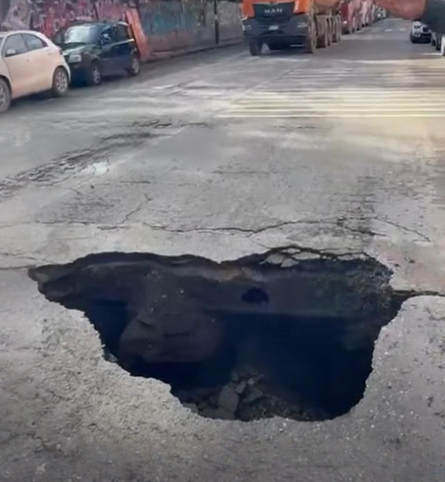 Non è solo una buca nell’asfalto. È l’ennesimo segnale di una città che paga il prezzo dell’improvvisazione e dei lavori avviati senza una reale tutela del territorio. A due passi dal quartier generale della Coppa America, in via Bagnoli, una voragine si è aperta proprio al centro della carreggiata, costringendo le autorità a bloccare il traffico e a fermare anche i tir diretti al cantiere, carichi di massi e pietrisco. Un cedimento improvviso che ha paralizzato la zona e fatto esplodere la rabbia dei residenti, già esasperati da giorni di passaggi continui di mezzi pesanti in un quartiere fragile, segnato da anni di promesse mancate e interventi mai davvero risolutivi.
