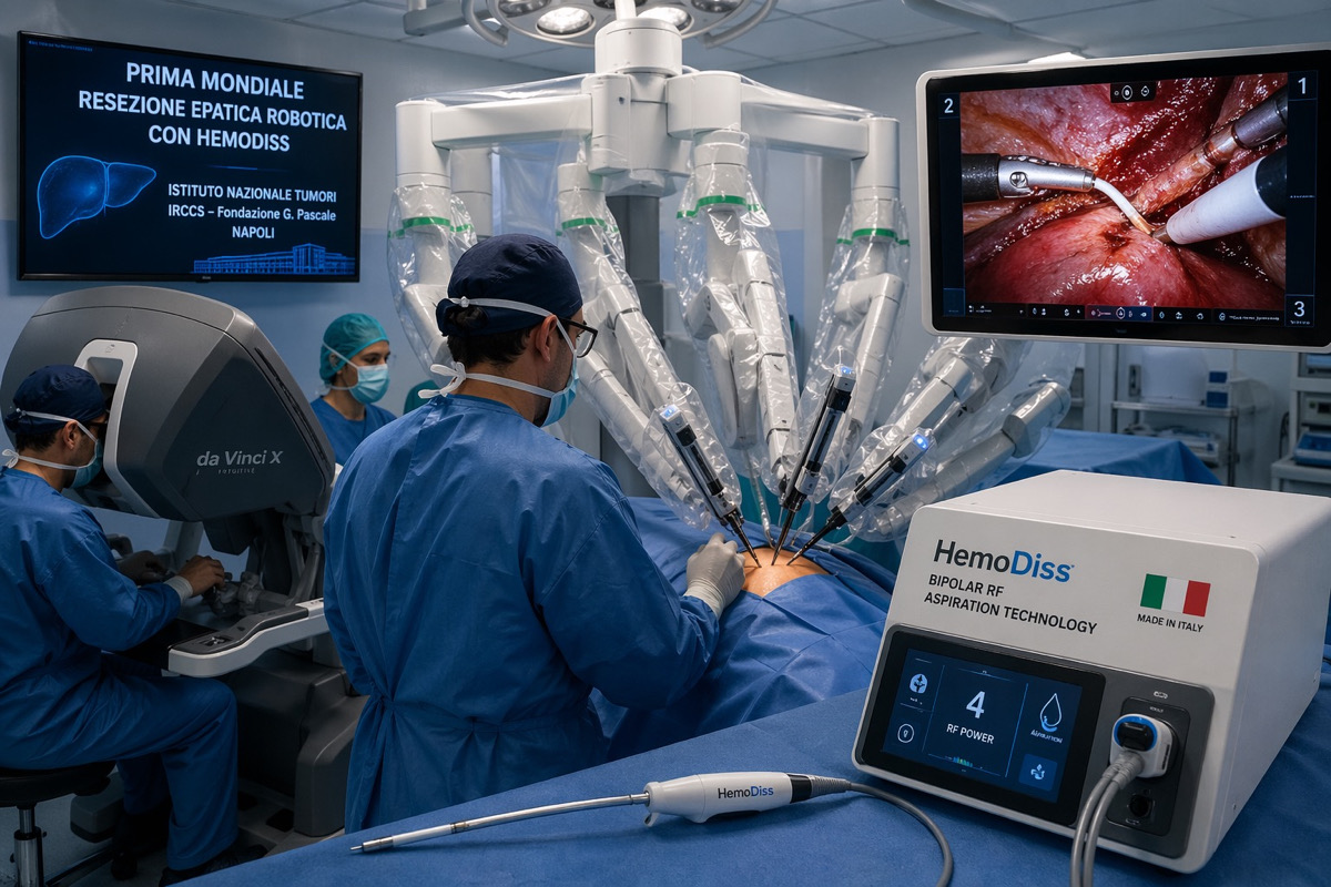 All’Istituto tumori Pascale di Napoli è stata eseguita con successo la prima resezione epatica robotica con HemoDiss. Si tratta di una nuova tecnologia tutta italiana che promette interventi più sicuri, rapidi e perdite di sangue ridotte al minimo. L’équipe guidata dal professor Francesco Izzo, direttore della Struttura complessa di Oncologia chirurgica addominale dell’Istituto dei tumori di Napoli, ha eseguito un’epatectomia sinistra impiegando solamente un’ora e mezza. Per la prima volta non è stata eseguita la manovra di Pringle, finora considerata uno standard per controllare il flusso ematico durante questi interventi, poiché non ci sono stati sanguinamenti. Cuore pulsante dell’operazione è stato HemoDiss, un sistema robotico a radiofrequenza bipolare dotato di aspirazione integrata, strumento in grado di dissecare e coagulare i tessuti in un unico movimenti. Soluzione ben diversa rispetto ai limiti delle tecniche tradizionali. Adesso si spera di estendere la tecnologia ad altri interventi, con possibili applicazioni nella chirurgia pancreatica e colorettale.