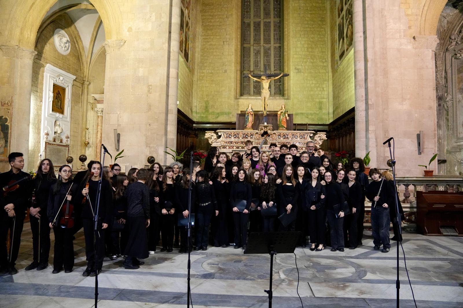 Doppio appuntamento nella settimana prenatalizia, a Napoli, con l’arte e la cultura nell’ambito delle iniziative di open day del Liceo classico Vittorio Emanuele II-Garibaldi. Grazie ai finanziamenti della Regione Campania di Scuola Viva e del Piano estate del MIM, gli studenti hanno avuto un gran da fare. Il 17 dicembre hanno animato il complesso dell’Annunziata con visite guidate, una performance teatrale curata dall’associazione Libera Imago, un concerto natalizio del coro e orchestra Garibaldi, diretto dal maestro Dino Cerabona. Al quale ha preso parte il giovane cantautore Matteo Caruso. Secondo appuntamento fissato per venerdì 19 dicembre alla Chiesa di San Pietro a Majella. Anche qui visite guidate e il consueto concerto natalizio del Coro e orchestra Neapolis diretti dalla maestra Vincenza Cardone e dal maestro Giovanni Block.