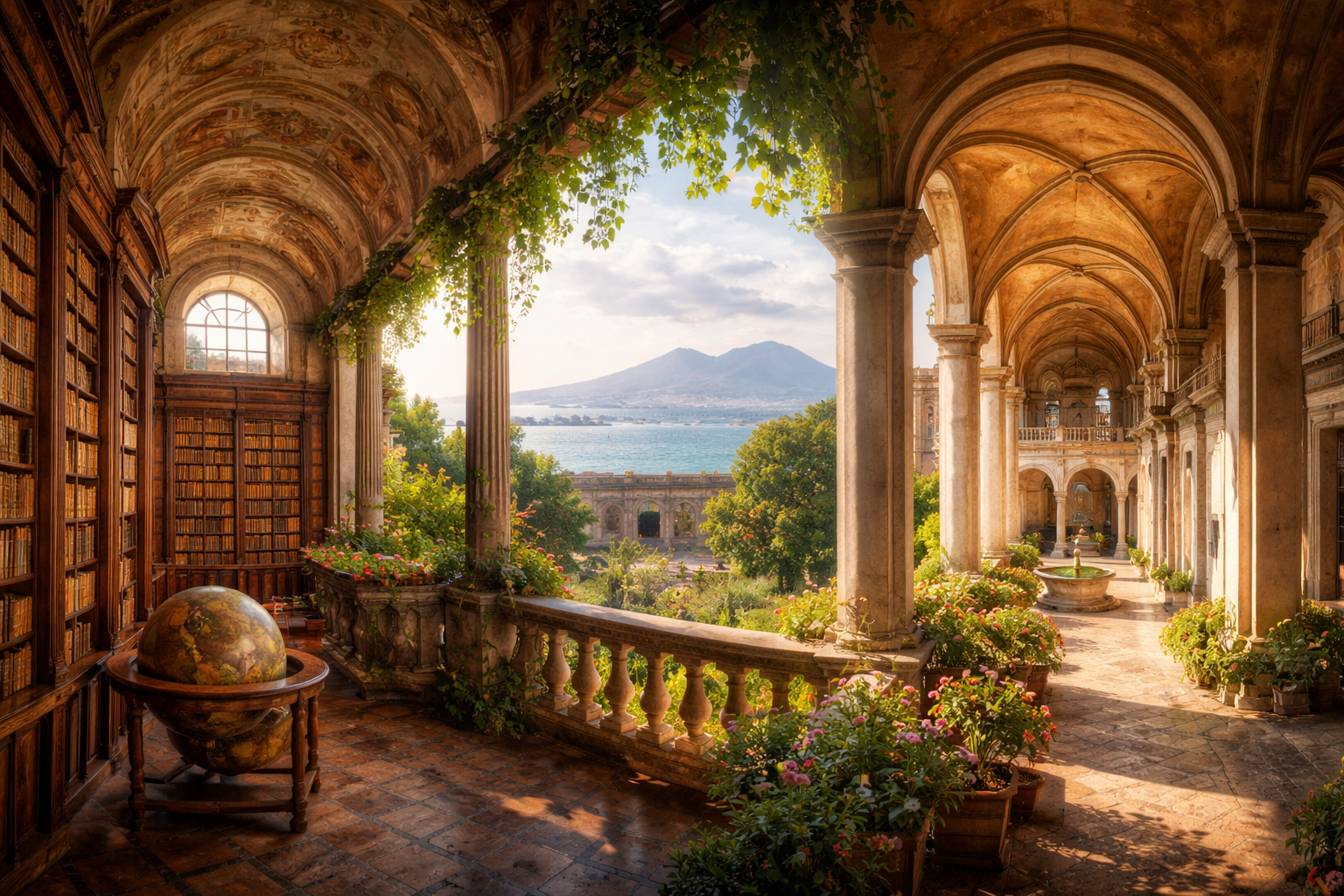 Non si può parlare di biblioteche napoletane senza partire dalla Biblioteca Nazionale Vittorio Emanuele III, uno dei poli culturali più importanti d’Italia. Terza a livello nazionale per patrimonio librario, dopo Roma e Firenze, custodisce oltre un milione e quattrocentomila volumi, centinaia di migliaia di opuscoli e migliaia di manoscritti. Nata alla fine del Settecento, la Biblioteca Nazionale è il risultato della confluenza di raccolte storiche prestigiose: dalla biblioteca della Reggia di Capodimonte a quella dei Gesuiti, passando per la Farnesiana e la Palatina. Tra i suoi scaffali è conservata anche una parte significativa degli scritti di Giacomo Leopardi, a testimonianza del ruolo centrale che Napoli ha avuto nel panorama letterario italiano. Visitare la Biblioteca Nazionale significa entrare in un luogo dove la storia del Regno di Napoli e del Mezzogiorno si intreccia con la grande cultura europea. È aperta al pubblico per consultazione e studio, generalmente nei giorni feriali, con orari che possono variare a seconda delle sale e dei servizi attivi. La collocazione nel Palazzo Reale rafforza il dialogo tra sapere e storia, trasformando un luogo un tempo simbolo del potere in uno spazio aperto alla conoscenza. A rendere ancora più affascinante l’esperienza è la recente riapertura dei Giardini di Palazzo Reale, tornati finalmente fruibili dal pubblico dopo un lungo lavoro di recupero. Un’area verde storica che restituisce alla città uno spazio di bellezza e quiete, affacciato sul Golfo e immerso in un contesto monumentale unico. I giardini rappresentano oggi un naturale prolungamento dell’esperienza culturale della Biblioteca: un luogo dove il sapere esce dalle sale di lettura e incontra la dimensione urbana, offrendo ai visitatori la possibilità di alternare studio, passeggiata e contemplazione. Un connubio raro, che rafforza l’idea di cultura come esperienza viva e accessibile.