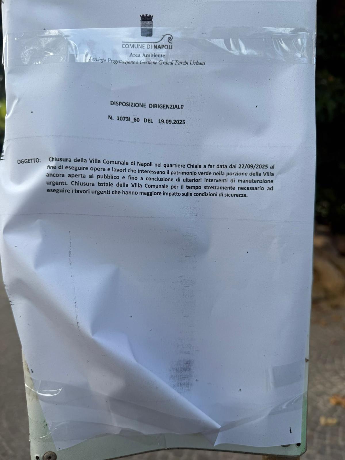 Pino Daniele (se tu fossi qui…), con ogni probabilità glielo chiederesti all’assessore Santagada. “Tu dimmi quando, quando? Eh, sì. Perché con la nostra campagna puntavamo alla riapertura della Villa Comunale e non alla chiusura totale e, per giunta, a tempo indeterminato. Da ieri, infatti, la Villa Comunale è off limits e non chiedete fino a quando. Nel foglio affisso all’ingresso non è indicato. Ma la Pubblica Amministrazione può non dare date certe alla cittadinanza, di fronte a un caso così eclatante? Tra le altre, una domanda sorge spontanea: ma le persone che abitano nel polmone verde abusivamente e tollerate ampiamente fino a ieri, le avete fatte prigioniere?