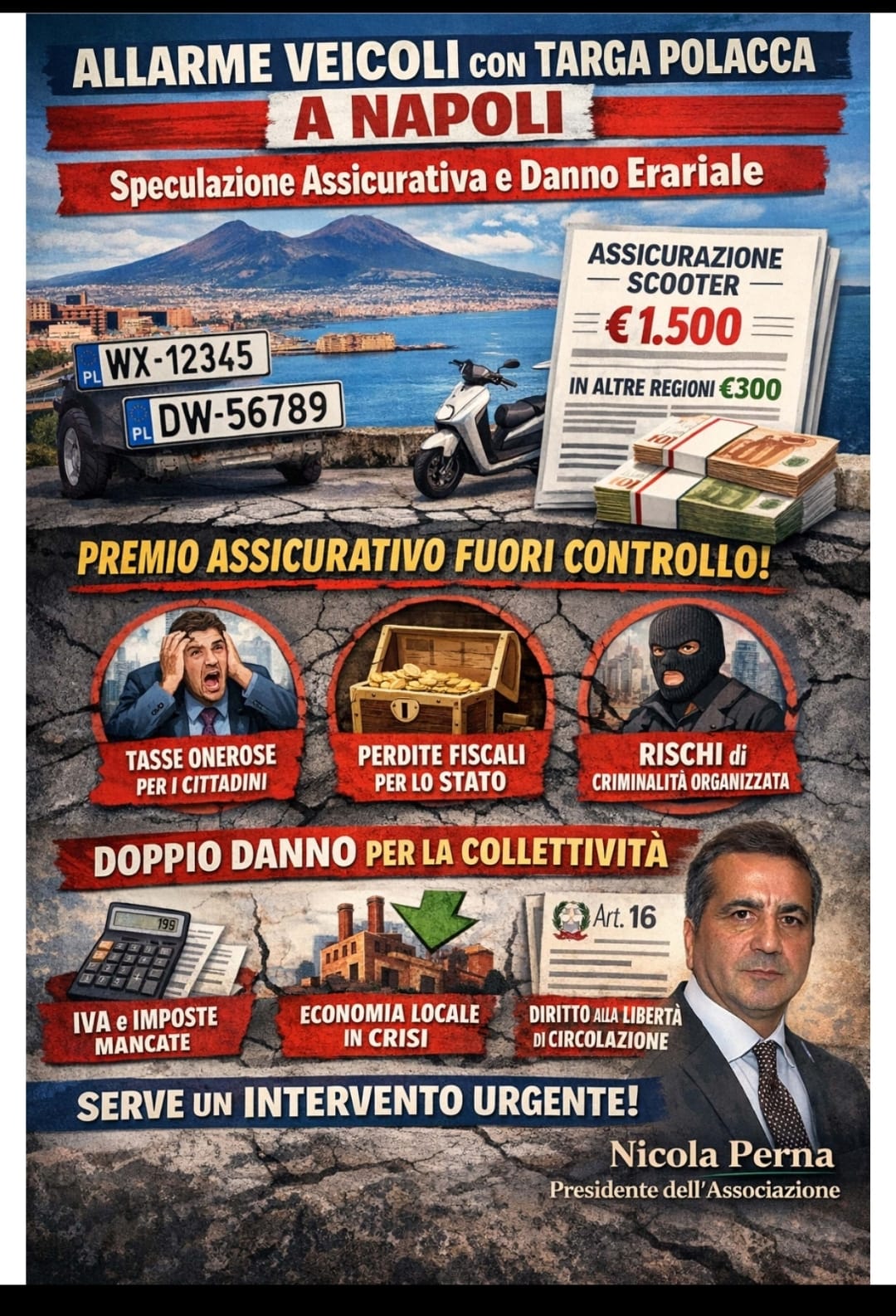 L’Associazione Carlo La Catena chiede subito la riforma del sistema assicurativo iniquo denuncia il fenomeno delle “targhe polacche”, ritenute un danno economico e sociale che minaccia libertà e la legalità. In un comunicato, si esprime preoccupazione per l’incremento del fenomeno delle immatricolazioni di veicoli con targhe estere a Napoli, fenomeno noto come “targhe polacche”. Questo fenomeno, che da isolato, sta diventando sistemico – si legge -, ha gravi ripercussioni economiche, sociali e legali sulla città e per l’Italia. Il sistema assicurativo italiano permette alle compagnie assicurative di rastrellare ricchezze dei territori in modo ingiustificato danneggiando la crescita e l’economia, crea povertà. “Le ragioni principali di questa diffusione risiedono nella disomogeneità dei premi assicurativi obbligatori tra le diverse regioni italiane – denuncia il presidente dell’Associazione Carlo La Catena, Nicola Perna -. A Napoli, infatti, i costi delle assicurazioni raggiungono cifre ingiustificate e insostenibili: circa 1.500 euro per uno scooter, mentre in altre aree del Paese l’importo si attesta intorno ai 300 euro. Questo divario non solo crea un ingiustificato danno economico per i cittadini, ma alimenta anche pratiche illecite, favorendo l’importazione di veicoli immatricolati all’estero e sottraendo risorse all’erario e all’economia locale”. Il fenomeno delle ”targhe polacche” non rappresenterebbe solo una questione di disparità economica, ma una potenziale minaccia per la sicurezza e la legalità del territorio. “Inoltre – spiega Perna -, questo sistema di elusione fiscale danneggia l’intera collettività, poiché comporta una significativa perdita di entrate per lo Stato, sia per quanto riguarda le imposte sull’acquisto dei veicoli che per quelle relative alle immatricolazioni e ai tributi locali. La mancata riscossione dei premi assicurativi riduce anche le risorse destinate a garantire la sicurezza stradale e la protezione dei cittadini”. L’Associazione Carlo La Catena ritiene che questa situazione non possa più essere ignorata. È necessario un intervento urgente da parte delle istituzioni competenti per sanare questa disparità di trattamento e contrastare i circuiti economici opachi che potrebbero essere legati alla criminalità organizzata. Le politiche pubbliche devono garantire un’adeguata regolamentazione del mercato delle assicurazioni, affinché vengano tutelati i diritti dei cittadini e l’equità del sistema fiscale nazionale.