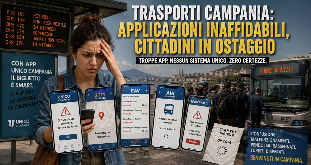 Doveva essere la rivoluzione smart della mobilità campana. Doveva bastare un click per sapere quando arriva l’autobus, acquistare un biglietto, evitare file, ritardi e soprattutto crisi di nervi. Invece, nel 2026, prendere un mezzo pubblico in Campania assomiglia ancora a una caccia al tesoro, con un’aggravante moderna: bisogna prima sopravvivere alle App.